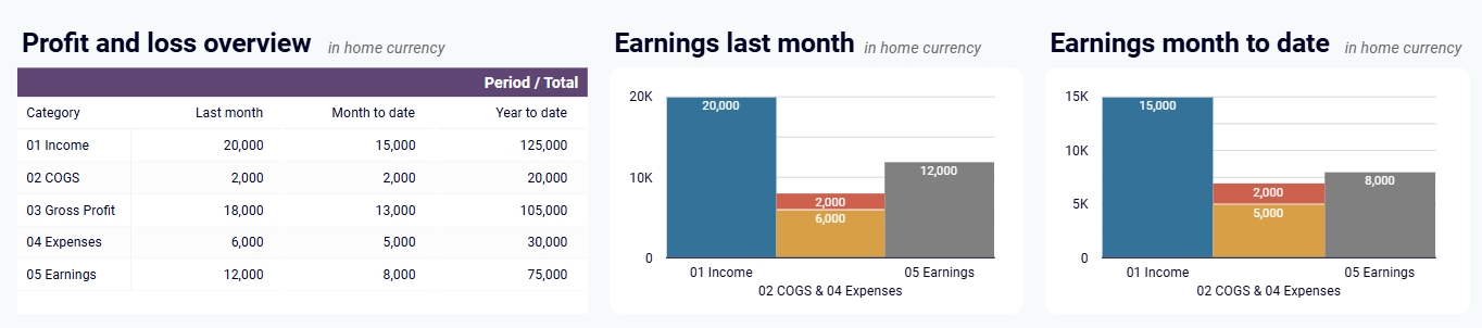 Compare your revenue against expenses across multiple time periods (last month, month-to-date, year-to-date) to understand your profitability trends. This metric on QuickBooks dashboards provides a clear picture of your financial performance, helping you identify areas for cost control and revenue enhancement.